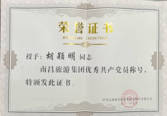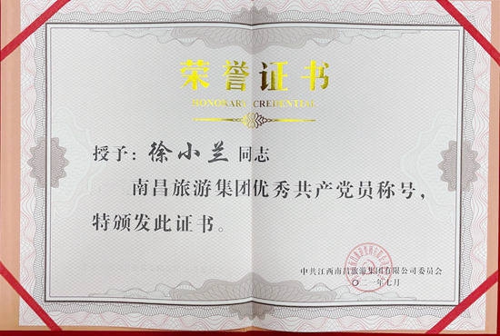 在隆重紀念中國共產(chǎn)黨成立100周年之際,南昌市國資委和南昌旅游集團于近日對一批來自各條工作戰(zhàn)線上的優(yōu)秀黨員和優(yōu)秀黨務工作者及先進基層黨組織進行了表彰,獎勵他(她)們在各自的工作崗位上履職盡責創(chuàng)先進、立足崗位爭優(yōu)秀,在推動企業(yè)高質(zhì)量發(fā)展中充分發(fā)揮戰(zhàn)斗堡壘和先鋒模范作用。其中,公司陳國明同志榮市國資委“優(yōu)秀共產(chǎn)黨員”稱號,公司黨委被評為南旅集團“先進基層黨組織”,黨員職工胡穎明、徐小蘭、王昕、王貞同南旅集團“優(yōu)秀共產(chǎn)黨員”稱號。