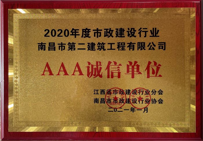 日前,江西省市政建設(shè)行業(yè)協(xié)會(huì)和南昌市市政行業(yè)協(xié)會(huì)召開兩年一次的先進(jìn)表彰大會(huì),我公司優(yōu)異成績(jī)連獲2020年度省、市市政建設(shè)行業(yè)“先進(jìn)單位”和“AAA誠(chéng)信單位”稱號(hào)。日前,江西省市政建設(shè)行業(yè)協(xié)會(huì)和南昌市市政行業(yè)協(xié)會(huì)召開兩年一次的先進(jìn)表彰大會(huì),我公司優(yōu)異成績(jī)連獲2020年度省、市市政建設(shè)行業(yè)“先進(jìn)單位”和“AAA誠(chéng)信單位”稱號(hào)。