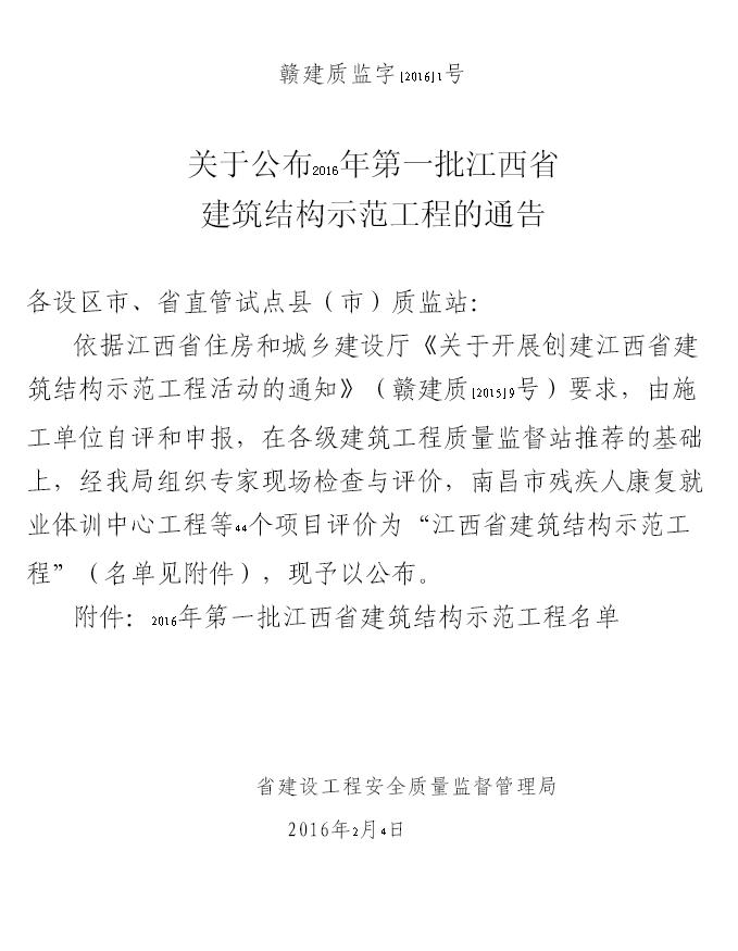 由南昌市第二建筑工程公司承建的郭家莊B地塊棚戶區(qū)改造項(xiàng)目(安置房)5#、6#、7#、8#樓及地下車(chē)庫(kù)工程獲“2016年第一批江西省建筑結(jié)構(gòu)示范工程” [摘自贛建質(zhì)監(jiān)字[2016]1號(hào)]。