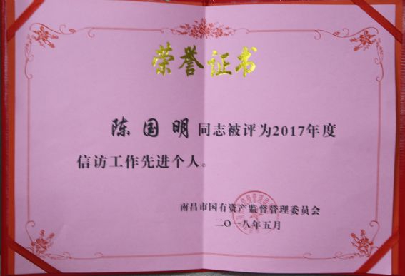 公司社會治安綜合治理和信訪工作榮獲國資委2017年度先進單位,陳國明、應友信同志榮獲國資委2017年度先進個人稱號。