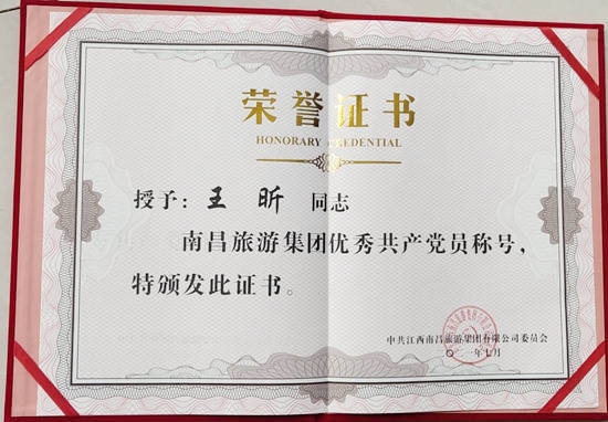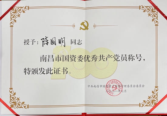 在隆重紀念中國共產(chǎn)黨成立100周年之際,南昌市國資委和南昌旅游集團于近日對一批來自各條工作戰(zhàn)線上的優(yōu)秀黨員和優(yōu)秀黨務工作者及先進基層黨組織進行了表彰,獎勵他(她)們在各自的工作崗位上履職盡責創(chuàng)先進、立足崗位爭優(yōu)秀,在推動企業(yè)高質(zhì)量發(fā)展中充分發(fā)揮戰(zhàn)斗堡壘和先鋒模范作用。其中,公司陳國明同志榮市國資委“優(yōu)秀共產(chǎn)黨員”稱號,公司黨委被評為南旅集團“先進基層黨組織”,黨員職工胡穎明、徐小蘭、王昕、王貞同南旅集團“優(yōu)秀共產(chǎn)黨員”稱號。